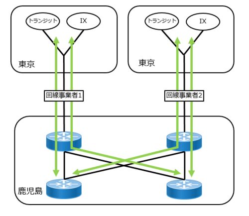 シナプスの技術部ネットワーク課の末吉と申します。 シナプスでは、東京/大阪の2ヶ所で他のASと接続をしており、鹿児島から東京/大阪までは回線事業者の複数の専用線を利用しています。 その専用線の1つが、メンテナンス等で利用する事ができない場合、お客…
