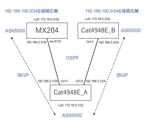 シナプスの技術部ネットワーク課の福山と申します。 ループバックインターフェースのOSPFコストのデフォルト値はIOSとJUNOSで異なります。 IOS : 1 JUNOS: 0 デフォルトのままだと何か問題があるのか検証してみました。 検証環境 主な設定内容 Cat4948E_A Ca…