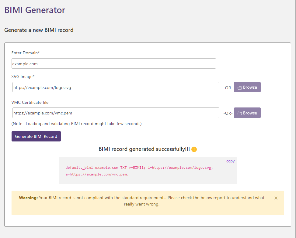 default._bimi.example.com. IN TXT "v=BIMI1;l=https://example.com/logo.svg;a=https://example.com/vmc.pem"